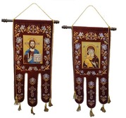 Хоругви. Общий размер 52*116 , размер иконы 26х37 см. Иконы вышитые. Машинная вышивка на бархате или безворсовой ткани, на выбор. Икона может быть любая, по желанию Заказчика. Изделие под заказ.