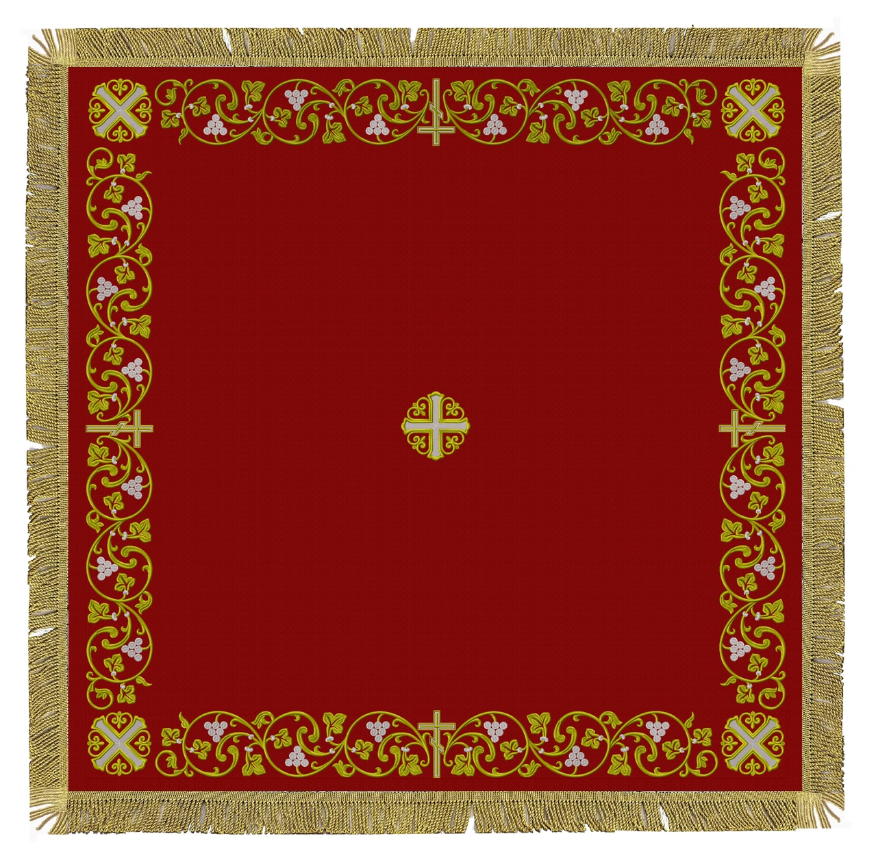 Пелена украшена по периметру крученой бахромой.